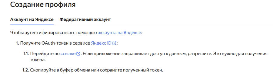 | OAuth-Токен | String | OAuth-токен в сервисе Яндекс.OAuth |