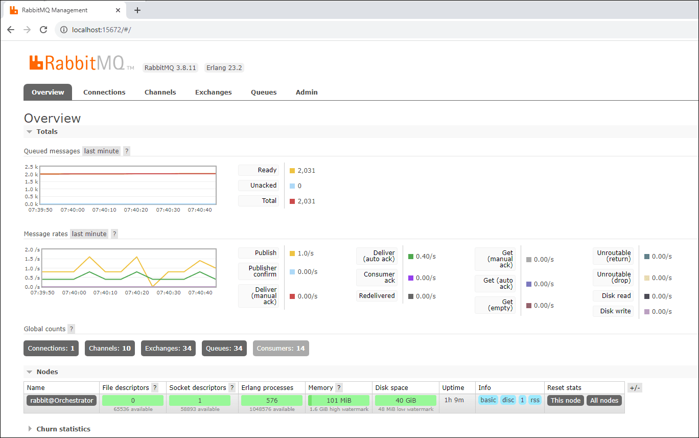 Проверяем работу сервера Rabbit, переходим по ссылке: http://localhost:15672 .