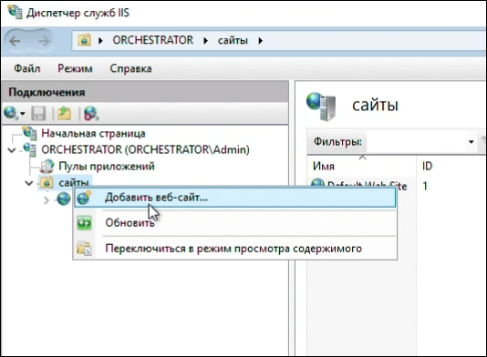 Установка Оркестратора на веб-сервер IIS